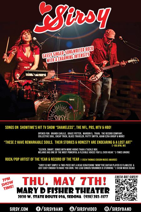 Back by popular demand: The Sedona International Film Festival announces award-winning recording duo Sirsy will be performing live in concert Thursday, May 7 at the Mary D. Fisher Theatre in Sedona at 7 p.m. |