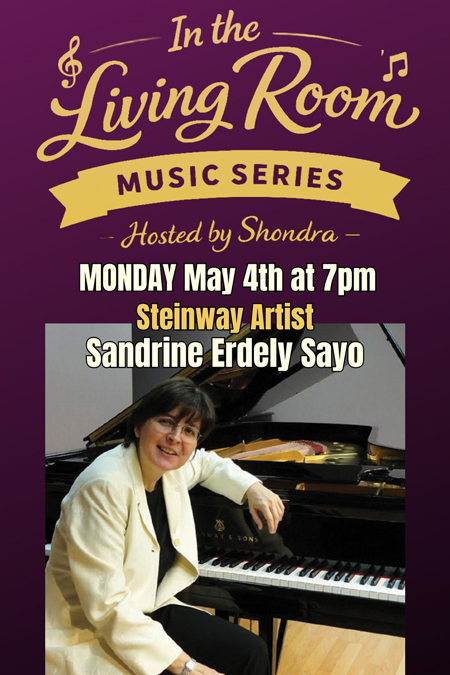 On Monday, May 4 at 7:00 p.m., series creator Shondra Jepperson sits down with Sandrine Erdely-Sayo — an International Steinway Artist — for an intimate evening of conversation, insight, and unparalleled musicianship.